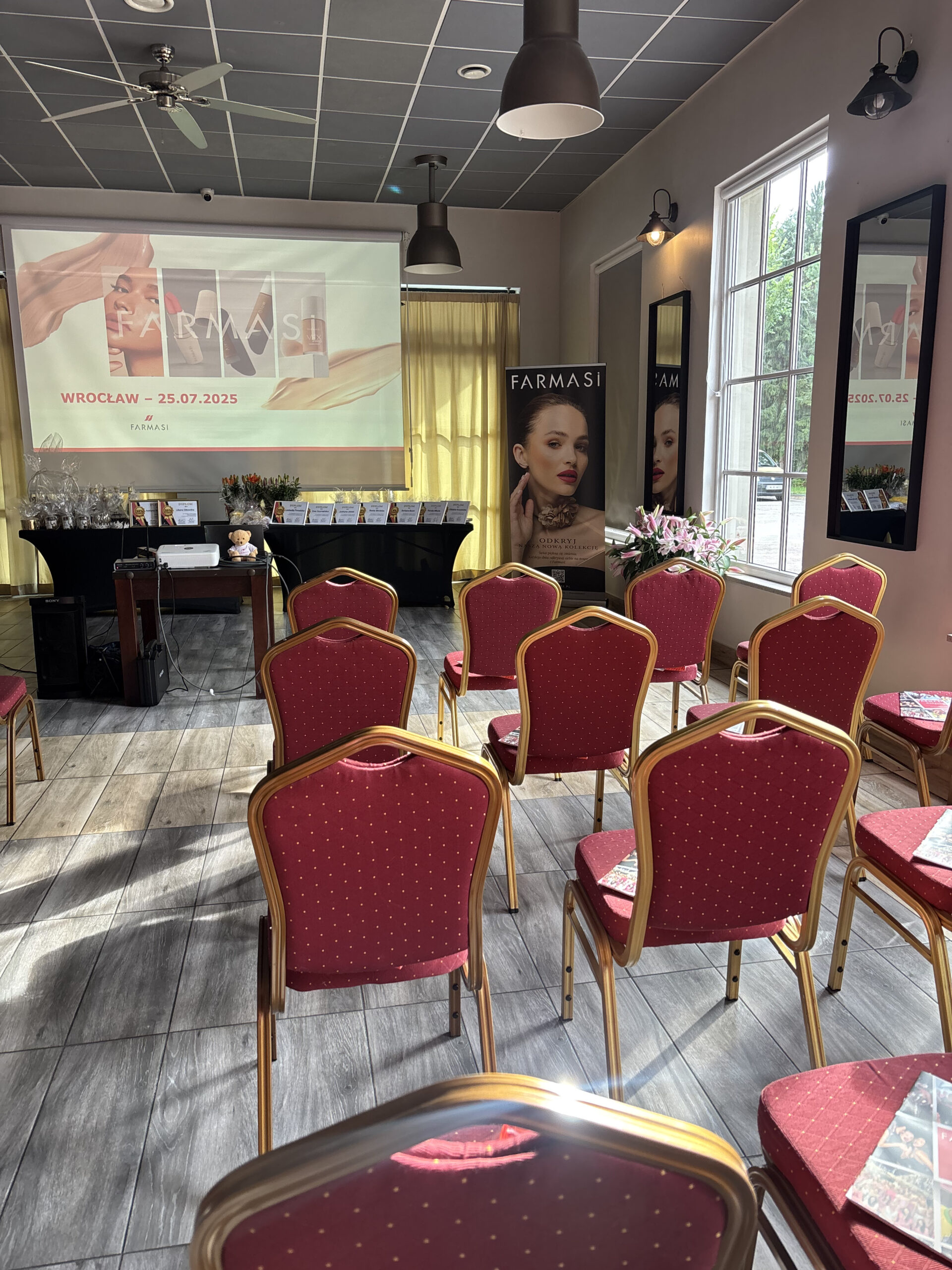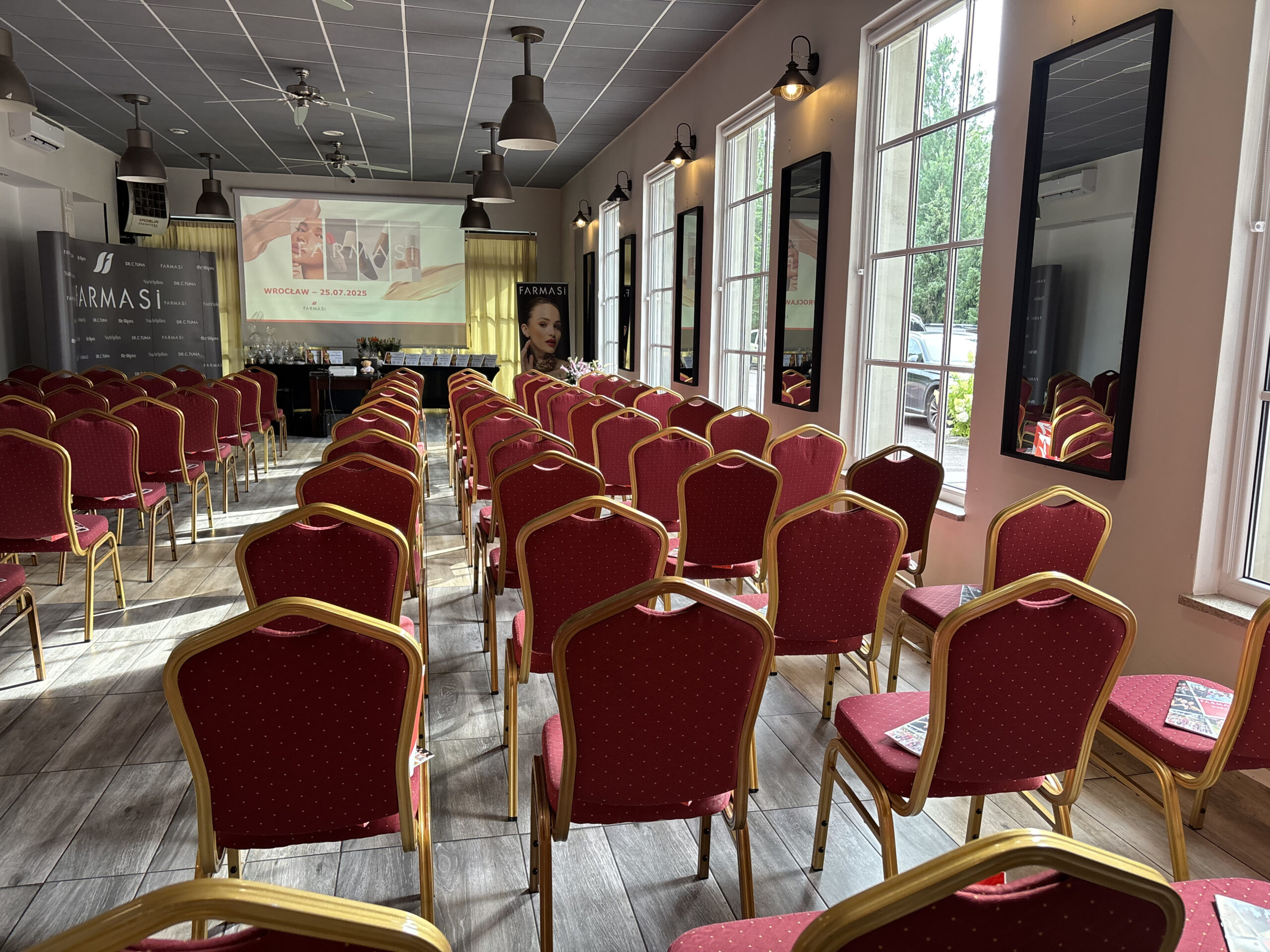 Pomieszczenie zostało zaprojektowane z myślą o maksymalnym komforcie uczestników, a jego prostokątny kształt sprawia, że rozstawienie krzeseł jest elastyczne i dostosowane do różnych formatów spotkań. Wysokiej jakości sprzęt audiowizualny oraz komfortowe umeblowanie zapewniają wygodę i koncentrację uczestników, co czyni tę salę doskonałym miejscem na profesjonalne wydarzenia.