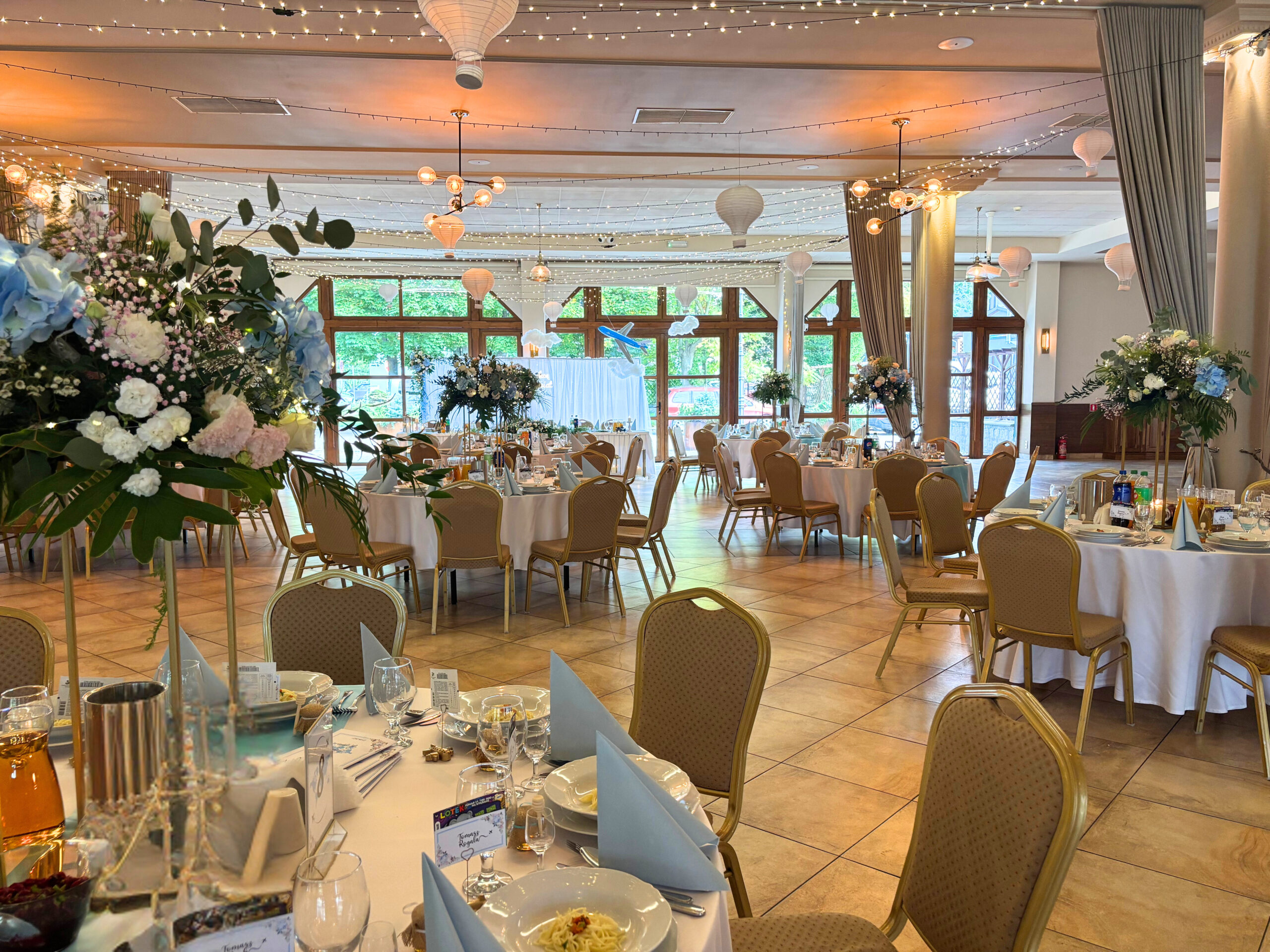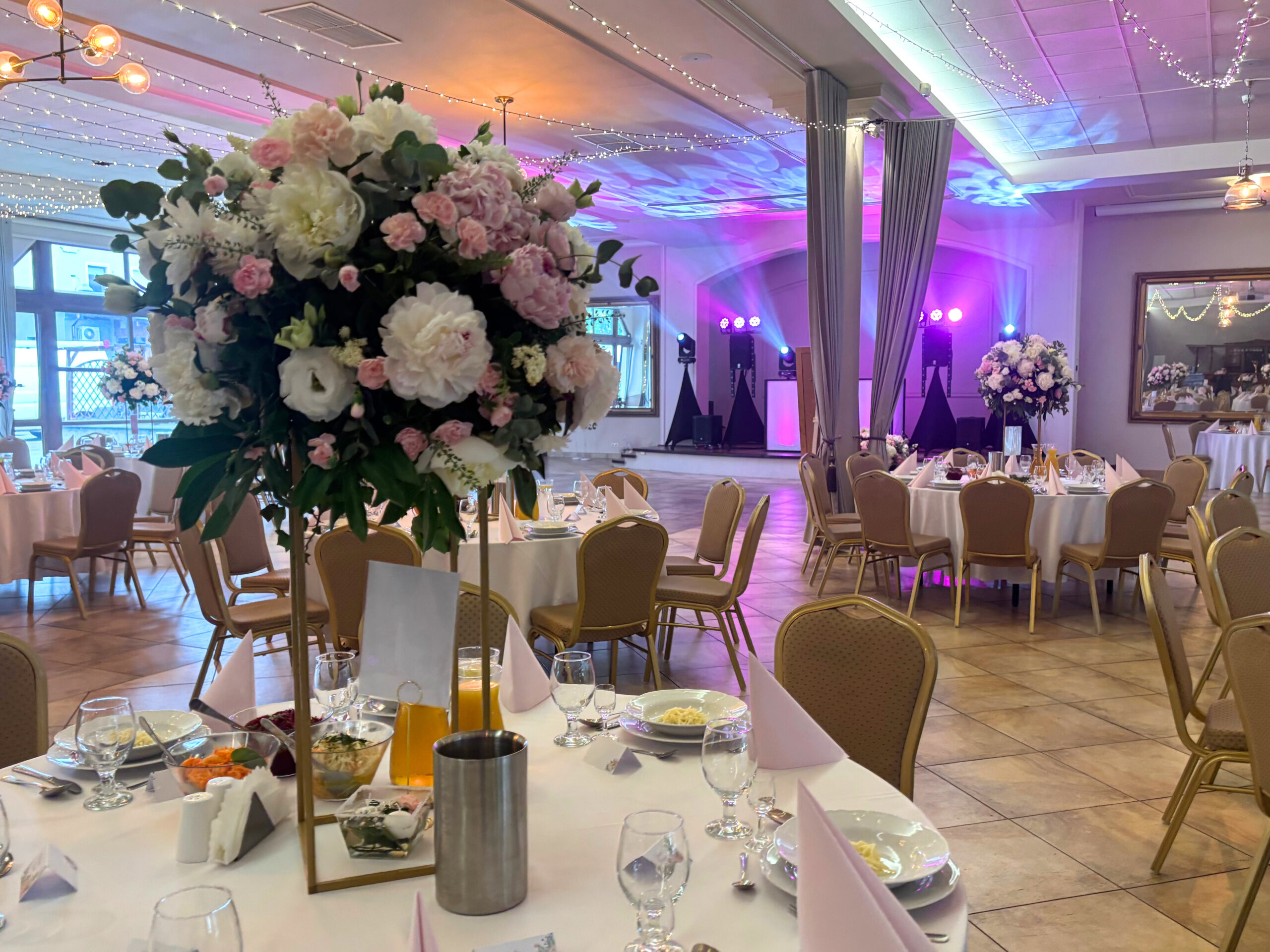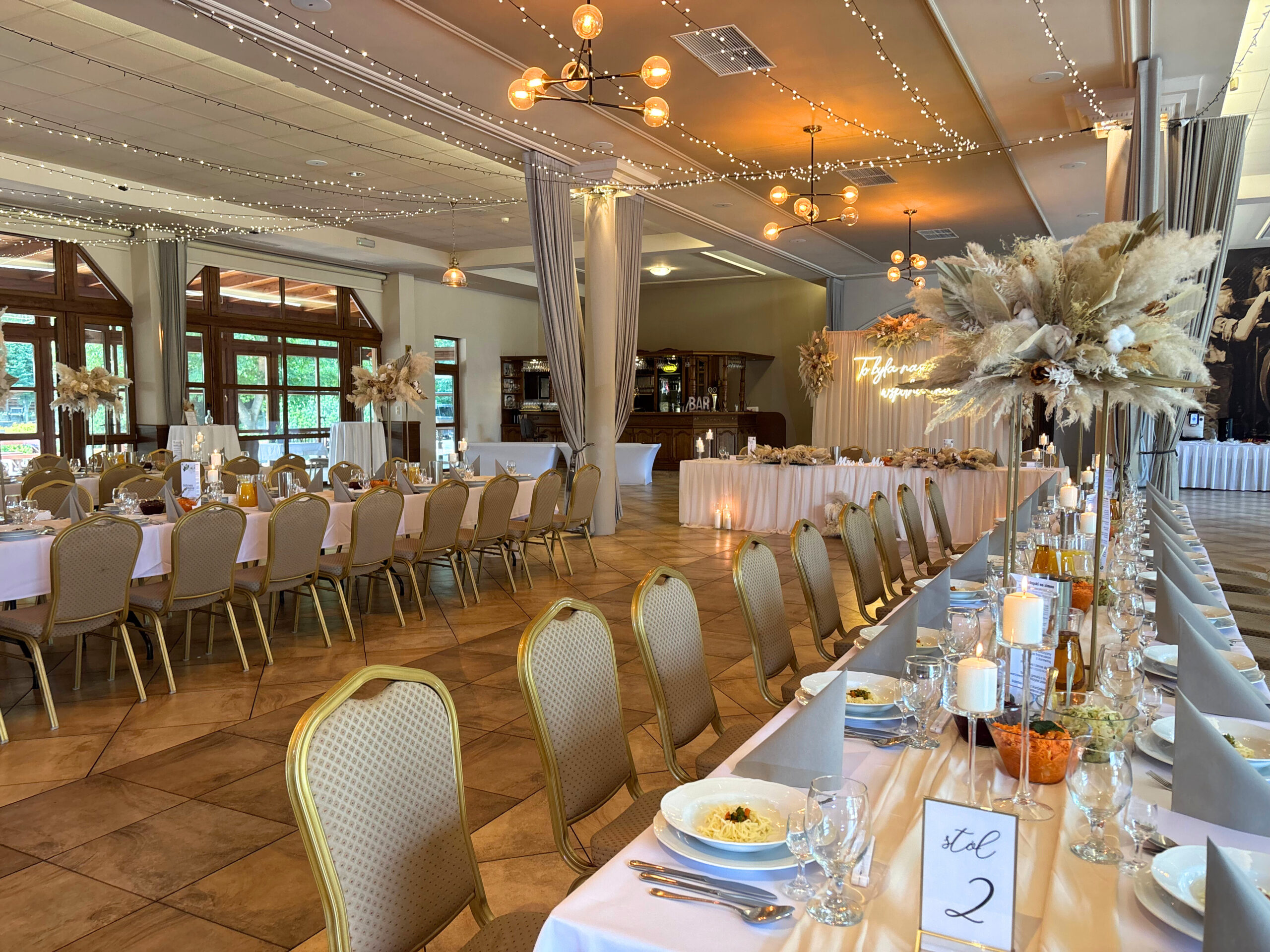 Przestronność sali oraz jej elegancki wystrój oferują nieograniczone możliwości aranżacji, które można dostosować do indywidualnych potrzeb Pary Młodej. Wysokie sufity, duże okna i piękne oświetlenie tworzą wyjątkowy nastrój, podkreślający uroczysty charakter przyjęcia.